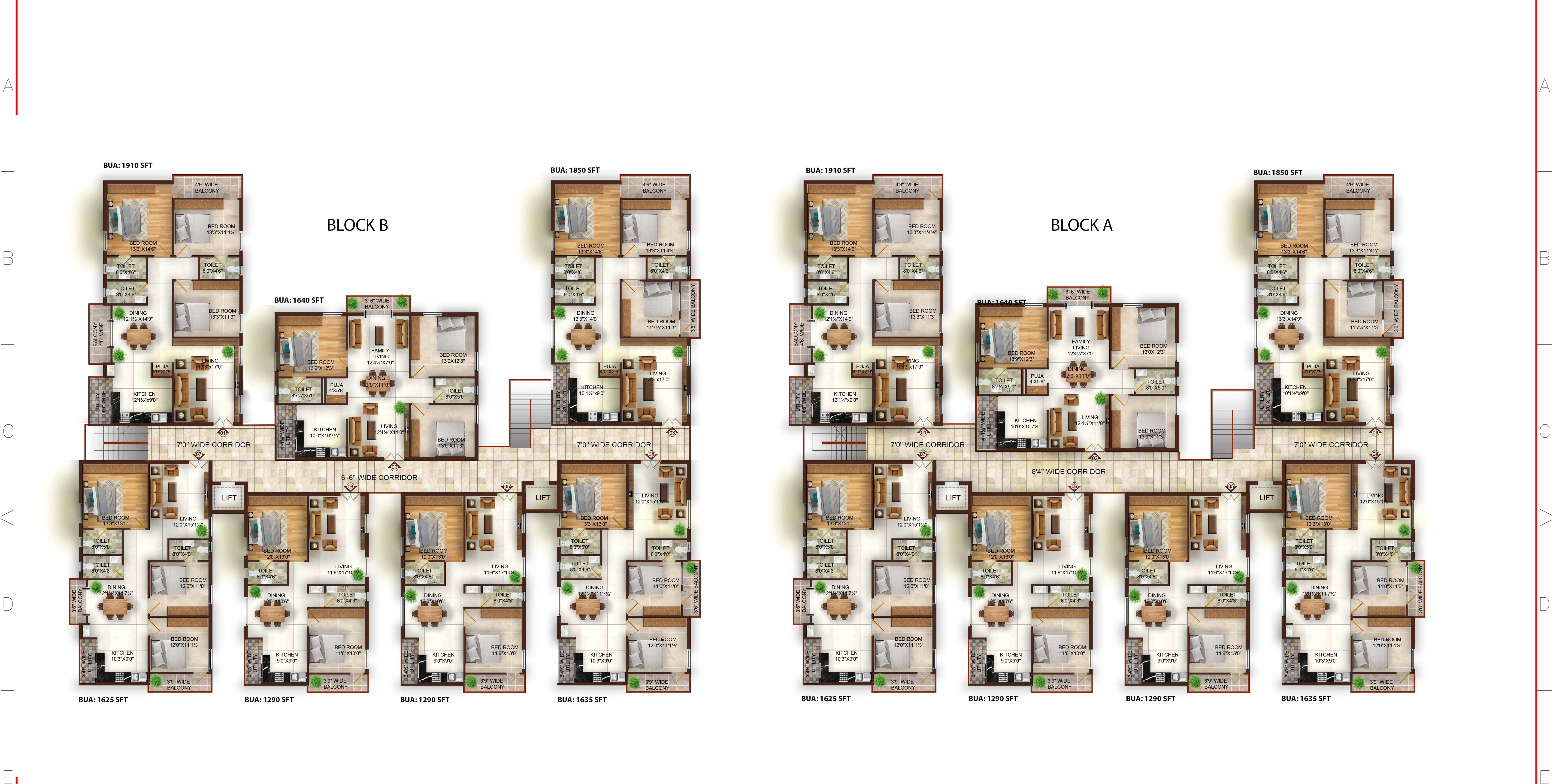 2 LIFTS EACH BLOCK